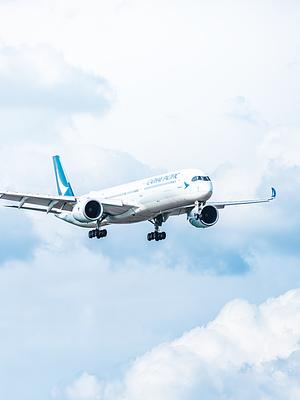 B-LXH, Cathay Pacific Airbus A350-1000 about to land on Runway 18L at Dallas Ft-Worth International Airport with the wonderful overcast clouds.