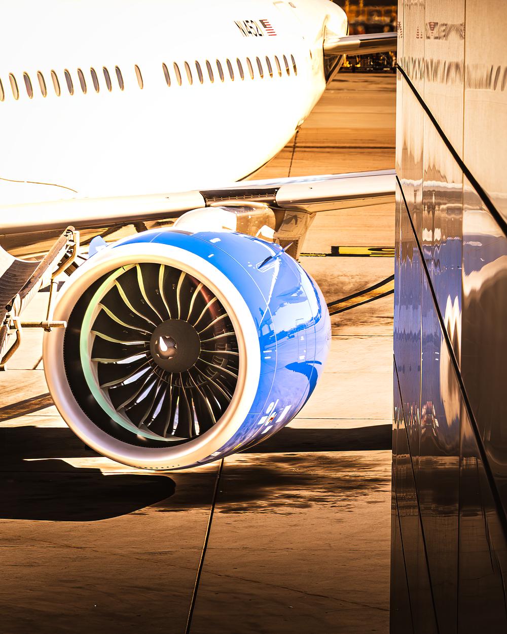 N14521, United Airlines Airbus A321neo Engine Closeup while it's parked at a Gate in Phoenix.