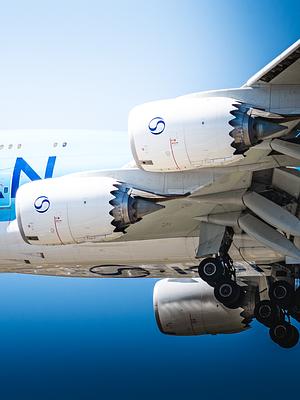 GE Engine Closeup on Korean Air's Boeing 747-8 with the new logo.