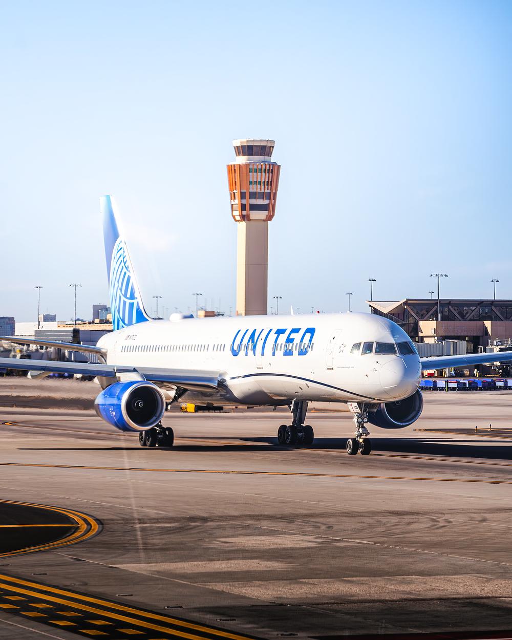 N17122, United Airlines Boeing 757-200 passes by the Phoenix Sky-Harbor ATC Tower.
