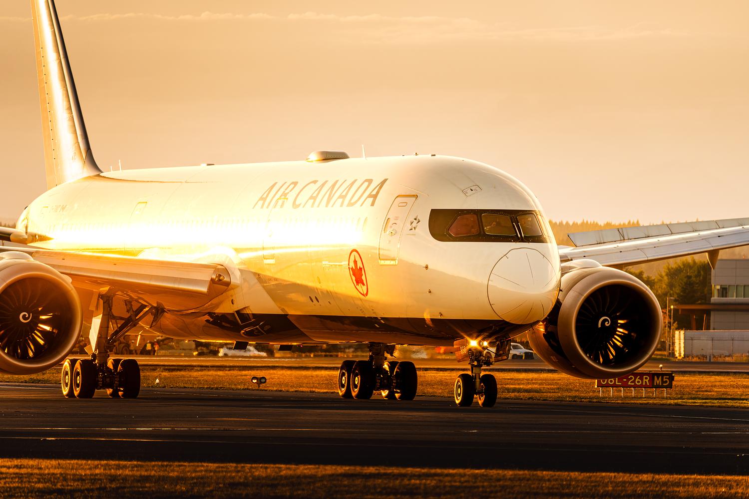 C-FVND, Air Canada Boeing 787-9 Dreamliner taxiing in front of the gorgeous sunset at Vancouver International Airport.