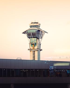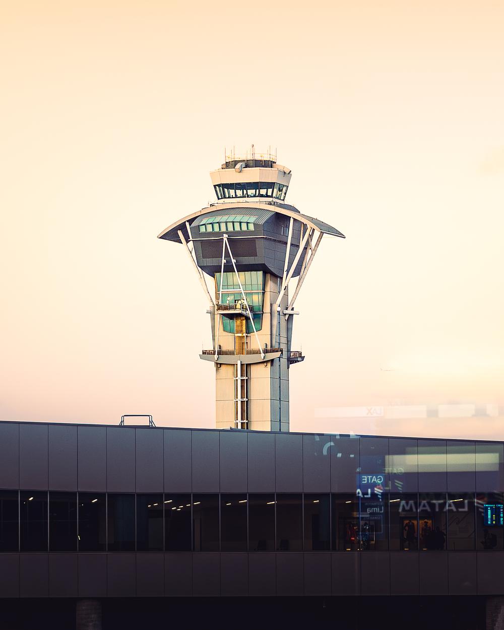 The iconic Air Traffic Control Tower at Los Angeles International Airport. Photographed from the Tom Bradley International Terminal.
